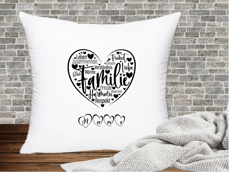 Kissenhülle & Leuchtrahmen mit Spruch – Herz aus Worten mit Name