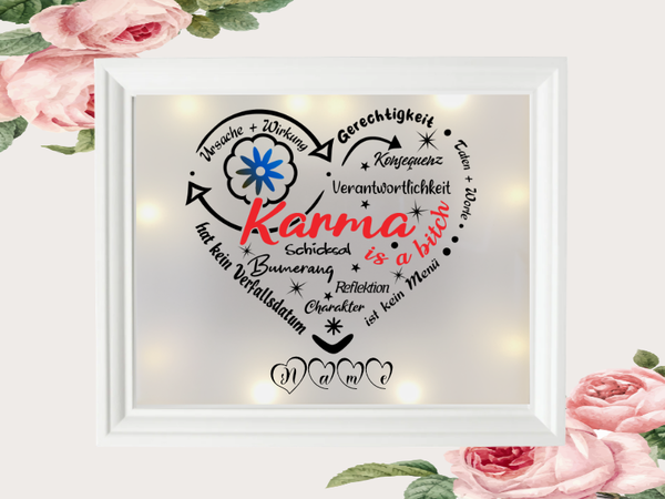 Kissenhülle & Leuchtrahmen mit Spruch – Herz aus Worten mit Name