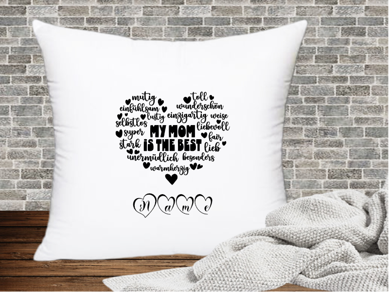 Kissenhülle & Leuchtrahmen mit Spruch – Herz aus Worten mit Name