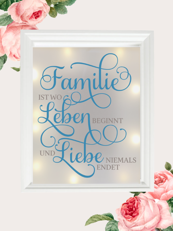 Kissenhülle & Leuchtrahmen mit Spruch - Familie