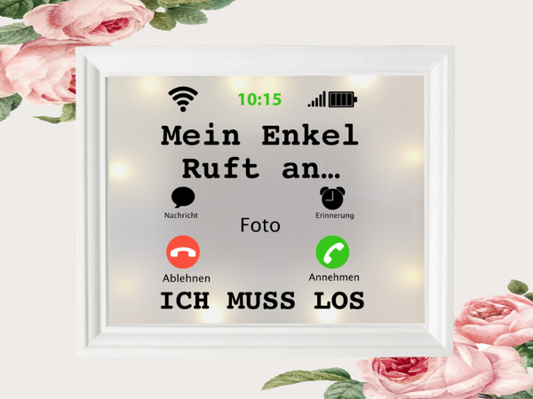 Kissenhülle & Leuchtrahmen mit Spruch - Mein Enkel ruft an… mit Foto