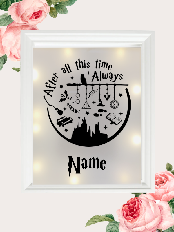 Zauberhafte Geschenkideen: Kissenhülle, Leuchtrahmen und Tasse mit Spruch – Harry Potter mit Namen