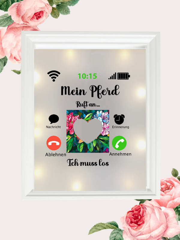 Überrasche dich selbst oder deine Liebsten mit individuellen Produkten, die dein Leben verschönern und deine Liebe zu Pferden auf besondere Weise zeigen. Unsere Kissenhülle, der stilvolle Leuchtrahmen und die charmante Tasse mit dem Spruch „Mein Pferd ruft an… Ich muss los“ sind die perfekten Begleiter für echte Pferdefans. Das Highlight: Du kannst sie mit einem persönlichen Foto gestalten, um ihnen eine noch persönlichere Note zu verleihen. Ob als Geschenk oder für dich selbst – diese Artikel sind ein Muss für alle, die Pferde lieben!