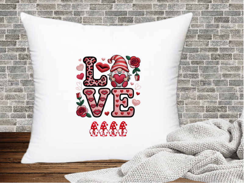 Kissenhülle: Kuschelig weich und dekorativ – die personalisierte Kissenhülle mit dem bezaubernden "Gnome Love"-Design bringt Gemütlichkeit in jedes Zuhause.