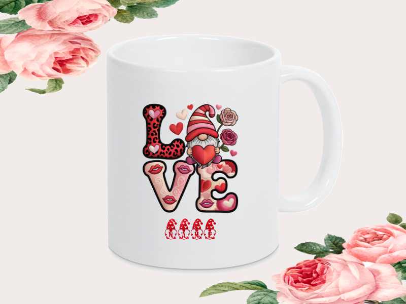 Personalisierte Geschenke: Kissenhülle, Leuchtrahmen & Tasse mit dem Motiv "Gnome Love"