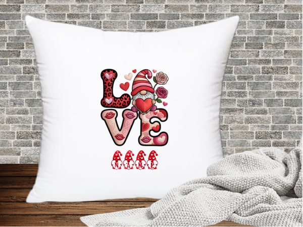 Kissenhülle: Kuschelig weich und dekorativ – die personalisierte Kissenhülle mit dem bezaubernden "Gnome Love"-Design bringt Gemütlichkeit in jedes Zuhause.
