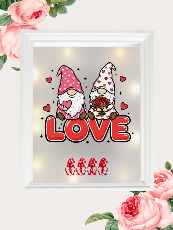 Personalisierte Geschenke: Kissenhülle, Leuchtrahmen & Tasse mit dem Motiv "Gnome Love"