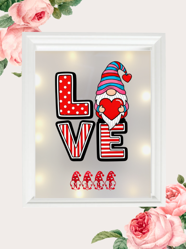 Personalisierte Geschenke: Kissenhülle, Leuchtrahmen & Tasse mit dem Motiv "Gnome Love"