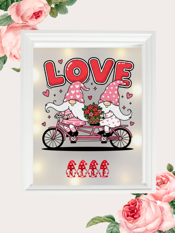 Personalisierte Geschenke: Kissenhülle, Leuchtrahmen & Tasse mit dem Motiv "Gnome Love"