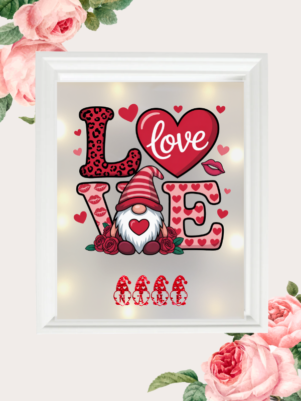 Personalisierte Geschenke: Kissenhülle, Leuchtrahmen & Tasse mit dem Motiv "Gnome Love"