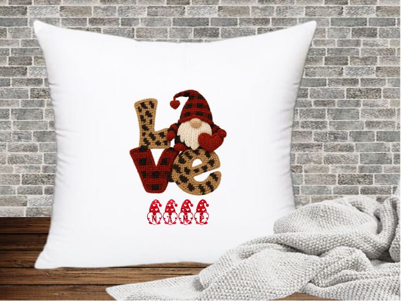 Kissenhülle: Kuschelig weich und dekorativ – die personalisierte Kissenhülle mit dem bezaubernden "Gnome Love"-Design bringt Gemütlichkeit in jedes Zuhause.