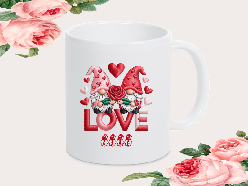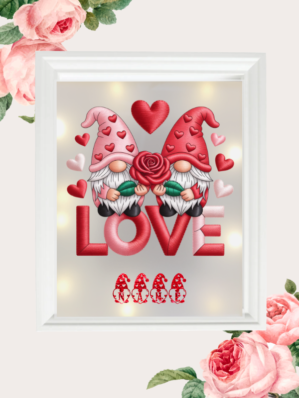 Personalisierte Geschenke: Kissenhülle, Leuchtrahmen & Tasse mit dem Motiv "Gnome Love"