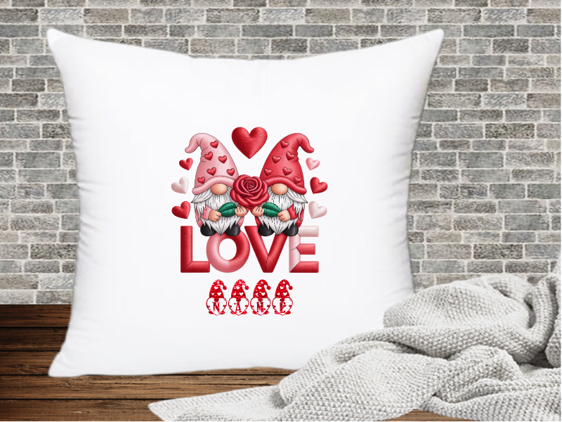 Kissenhülle: Kuschelig weich und dekorativ – die personalisierte Kissenhülle mit dem bezaubernden "Gnome Love"-Design bringt Gemütlichkeit in jedes Zuhause.