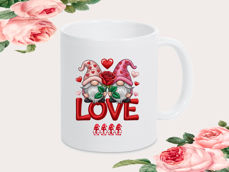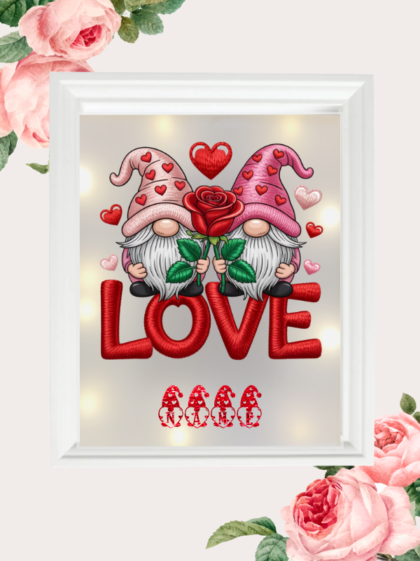 Personalisierte Geschenke: Kissenhülle, Leuchtrahmen & Tasse mit dem Motiv "Gnome Love"