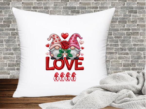 Kissenhülle: Kuschelig weich und dekorativ – die personalisierte Kissenhülle mit dem bezaubernden "Gnome Love"-Design bringt Gemütlichkeit in jedes Zuhause.