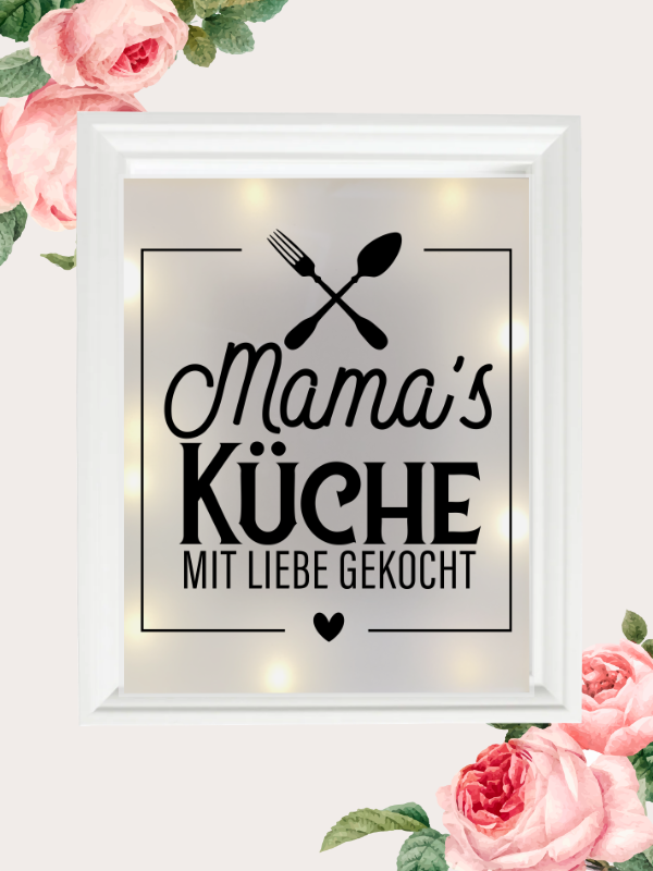 Überraschen Sie die wichtigste Person in Ihrem Leben mit unseren liebevoll gestalteten Produkten: der Kissenhülle, dem Leuchtrahmen und der Tasse mit dem Spruch "Mama’s Küche – mit Liebe gekocht". Diese einzigartigen Artikel vereinen Stil und Funktionalität und sind die ideale Wahl, um Ihre Wertschätzung auszudrücken. Ob als dekoratives Highlight in der Küche, als gemütliches Accessoire fürs Sofa oder als täglicher Begleiter beim morgendlichen Kaffee – diese Artikel sind nicht nur praktisch, sondern auch eine herzliche Erinnerung daran, wie besonders Mama ist. Wählen Sie Qualität mit Persönlichkeit und machen Sie Ihren Liebsten eine Freude!